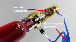 Par défaut, l'Ultra Mini Guard fonctionne par activation thermique : l'extincteur est activé lorsque l'ampoule de verre sensible à la chaleur éclate en raison de la température élevée. L'Ultra Mini Guard se déclenche donc automatiquement lorsque l'environnement atteint une température de 68°C (activation thermique).